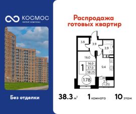 Продаётся 1-комнатная квартира в сданном доме (Корпус 2), срок сдачи: 2-кв. 2025, общей площадью 38.25 кв.м., на 10 этаже. ЖК ''Космос'' - новое место для жизни, в котором сочетаются отличная экология, удобное расположение, креативные решения архитектуры и функциональные планировки квартир. Строительство жилого комплекса ведётся при проектном финансировании Сбербанка. ЖК ''Космос'' расположен в микрорайоне Авиационный (Домодедово), в 24 километрах от МКАД по Каширскому шоссе.Проект будет состоять из 7 корпусов высотой 12 этажей. На первых этажах домов запланировано открытие необходимых для жителей объектов торговой и социальной инфраструктуры, в том числе магазинов, кафе, медицинского центра. В микрорайоне Авиационный также есть всё необходимое для комфортной жизни - здесь находятся детские сады, школы, высшие учебные заведения, магазины, поликлиники и медицинские центры, спортивный клуб, ТЦ ''Торговый город''. Помимо этого, жители ЖК ''Космос'' смогут пользоваться развитой инфраструктурой г.о. Домодедово - до него можно добраться за 20 минут на автомобиле или электричке.Одна из особенностей ЖК ''Космос'' - отличное экологическое состояние локации. В 10 минутах ходьбы от комплекса находится благоустроенный парк ''Взлёт'' с красивым прудом Лесным, здесь планируется дальнейшее благоустройство территории. Рядом с ''Космосом'', на площади Гагарина, будут проходить городские мероприятия.Проект отличается удобной транспортной доступностью - до МКАД можно добраться за 20-25 минут. Около жилого комплекса находятся остановки общественного транспорта, в пешей доступности - ж/д станция ''Авиационная'' Павелецкого направления.На придомовой территории ЖК ''Космос'' предусмотрено устройство парковочных мест численностью 544 машино-места, в том числе для маломобильных групп населения.