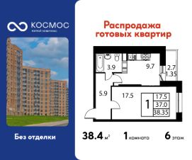 Продаётся 1-комнатная квартира в сданном доме (Корпус 7), срок сдачи: 2-кв. 2025, общей площадью 38.35 кв.м., на 6 этаже. ЖК ''Космос'' - новое место для жизни, в котором сочетаются отличная экология, удобное расположение, креативные решения архитектуры и функциональные планировки квартир. Строительство жилого комплекса ведётся при проектном финансировании Сбербанка. ЖК ''Космос'' расположен в микрорайоне Авиационный (Домодедово), в 24 километрах от МКАД по Каширскому шоссе.Проект будет состоять из 7 корпусов высотой 12 этажей. На первых этажах домов запланировано открытие необходимых для жителей объектов торговой и социальной инфраструктуры, в том числе магазинов, кафе, медицинского центра. В микрорайоне Авиационный также есть всё необходимое для комфортной жизни - здесь находятся детские сады, школы, высшие учебные заведения, магазины, поликлиники и медицинские центры, спортивный клуб, ТЦ ''Торговый город''. Помимо этого, жители ЖК ''Космос'' смогут пользоваться развитой инфраструктурой г.о. Домодедово - до него можно добраться за 20 минут на автомобиле или электричке.Одна из особенностей ЖК ''Космос'' - отличное экологическое состояние локации. В 10 минутах ходьбы от комплекса находится благоустроенный парк ''Взлёт'' с красивым прудом Лесным, здесь планируется дальнейшее благоустройство территории. Рядом с ''Космосом'', на площади Гагарина, будут проходить городские мероприятия.Проект отличается удобной транспортной доступностью - до МКАД можно добраться за 20-25 минут. Около жилого комплекса находятся остановки общественного транспорта, в пешей доступности - ж/д станция ''Авиационная'' Павелецкого направления.На придомовой территории ЖК ''Космос'' предусмотрено устройство парковочных мест численностью 544 машино-места, в том числе для маломобильных групп населения.