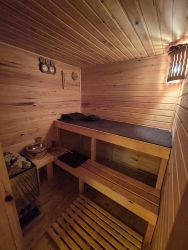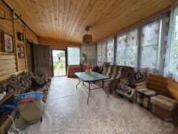 Продам гостевой Дом-Баню 230 м² на участоке 48 соток,в элитном камерном поселке, с/пос. Бужаровское, д. ЛеоновоКП Ушаковские Дачи-1, уч. 1мун. округ Истра, Московской областиУчасток видовой.Поляна, переходящая в вековой смешанный лес с грибницами боровиков, белых и др грибов,земляничными полянами, лесной малиной....С участка открывается видна протекающий вдоль участка Изумрудный ручей,впадающий в Ушаковское озеро, находящееся в шаговой доступности.Широчайший простор для фантазии ландшафтного дизайнера.Именье расположено в камерном, строго охраняемом,поселке премиум класса с статусными соседями!В поселке всего 32 участка.Поселок со всех сторон огорожен кованным забором,с круглосуточным видеонаблюдением на въездной группе.На участке построен гостевой Дом-Баня 230 м ², по проекту ООО ,, Сибирские деревянные дома из северной сосны диаметром 35-55 см. , с ''юбками на выпусках.- Дом выполнен канадской ручной рубкой.Бревно проложено северным мхом ''Кукушкин лен'',обеспечивающим максимальную сохранность и теплоизоляцию.- Крыша из Австрийской металлочерепицы, покрытая крошкой из натурального камня, стилизованна под солому.- Фундамент свайно-ростверковый, залита монолитная плита 20 см, с армированием.Также есть проект основного. дома, место под него расчищено, прилагается в подарок!Вода в поселке подается централизованно. Газ по границе.Электричество 15 кВт, с возможностью увеличения.Рядом расположено несколько конных ферм с обучением верховой езде.Дороги в поселке заасфальтированы и освещены.Круглосуточная охрана.1 собственник. Прямая продажа.