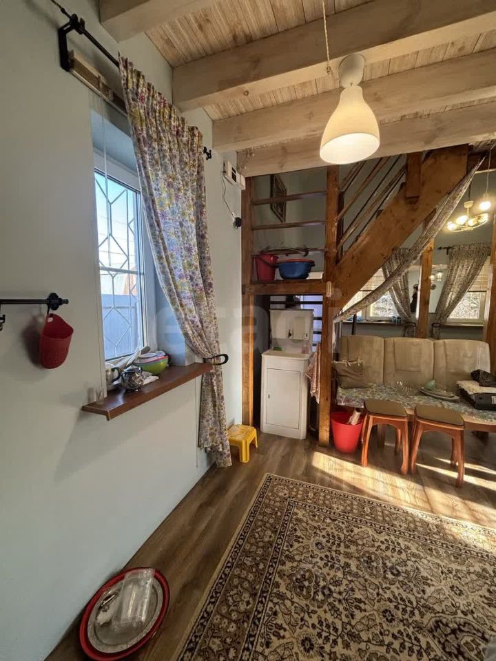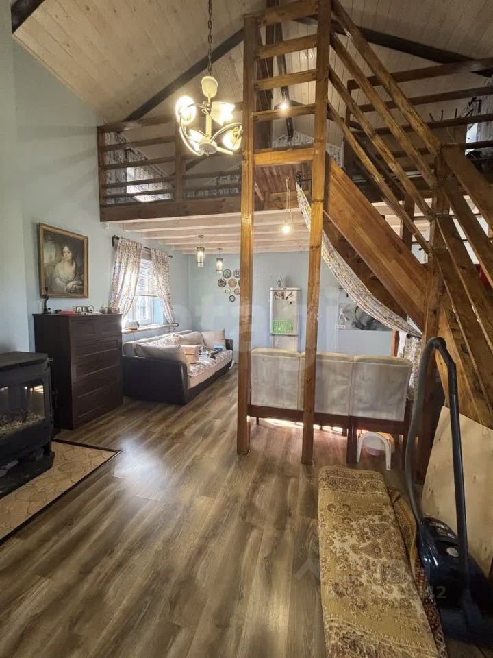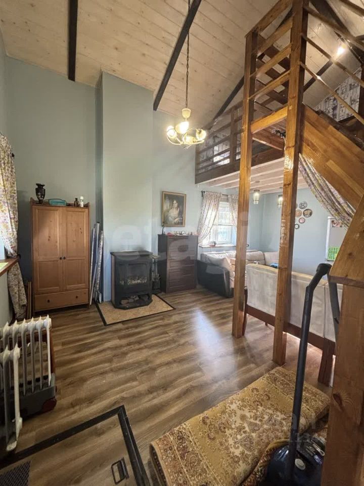 На первом этаже расположено единое пространство, где мини-кухня гармонично сочетается с гостиной, создавая атмосферу уюта и комфорта. На втором этаже находится спальня, а также второй свет с высокими потолками, что добавляет ощущение простора и света. В доме установлен камин с теплообменником, который обеспечит тепло и уют в любую погоду.