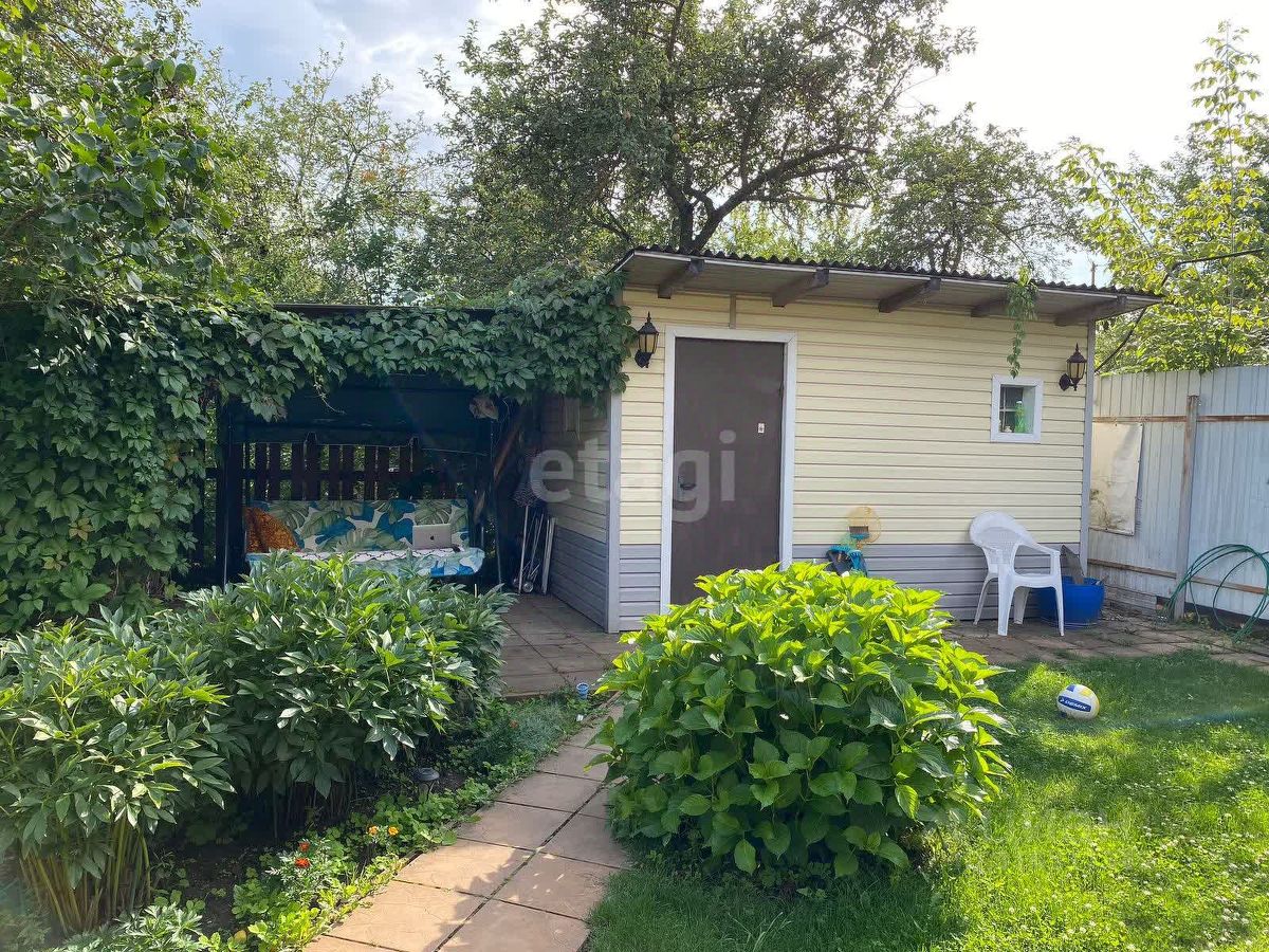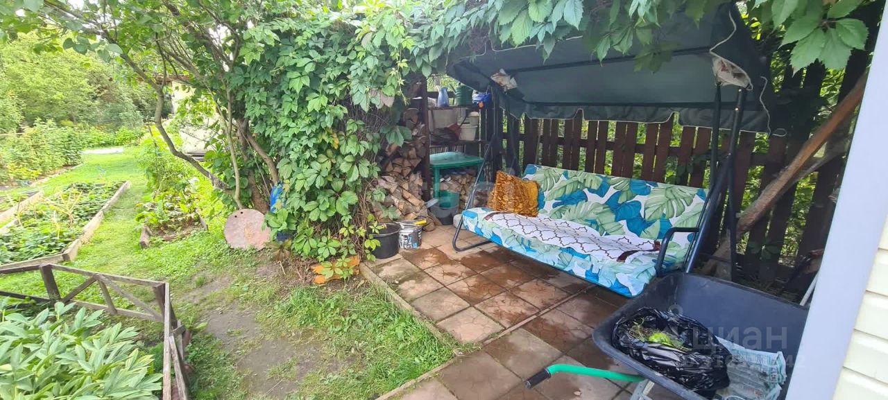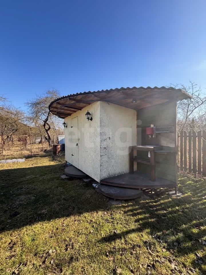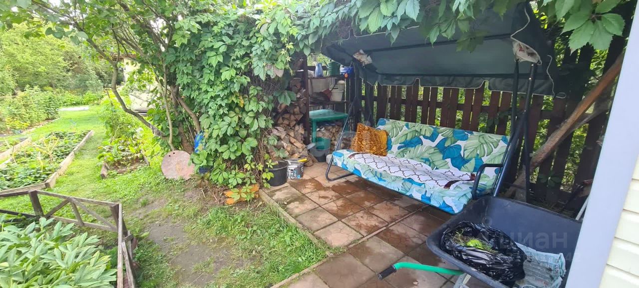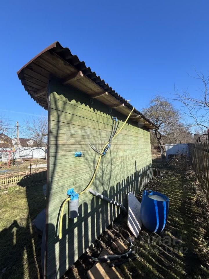 На участке также построен летний санузел с душевой кабиной и биотуалетом, где вода подогревается. Кирпичный сарай с навесом идеально подходит для хранения садовых инструментов и организации зоны отдыха с садовыми качелями. Под навесом предусмотрена дровница.