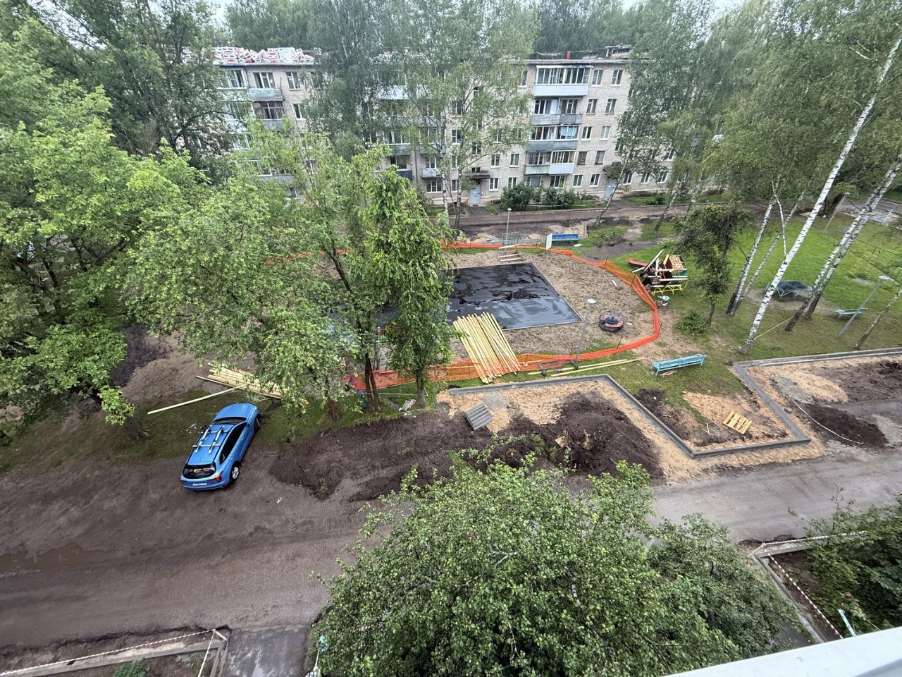 Благоустройство двора: Расширение дорог и новые парковки по программе губернатора МО Современная детская площадка