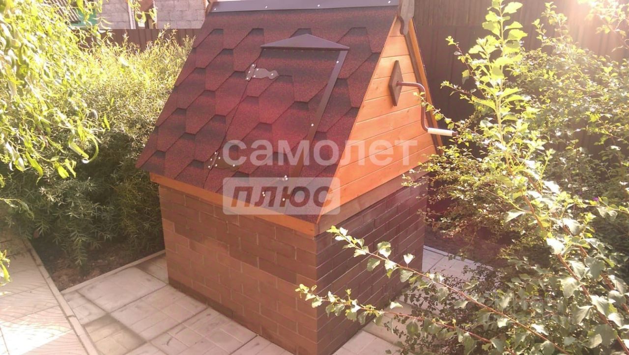 Участок ухожен, много декоративных растений. Рядом общественный колодец с питьевой водой, установлена колонка для удобного забора воды. Пруд