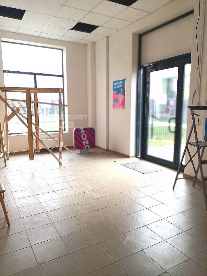 Вход с улицы, дверь + 2 панорамных окна на 1-ом этаже 17-и этажного жилого дома. Напротив расположен детский сад, со входом со стороны помещения. Общая площадь 50 м2, 2 комнаты + санузел. Номинальная мощность 9 кВт, но можно увеличить по желанию арендатора.