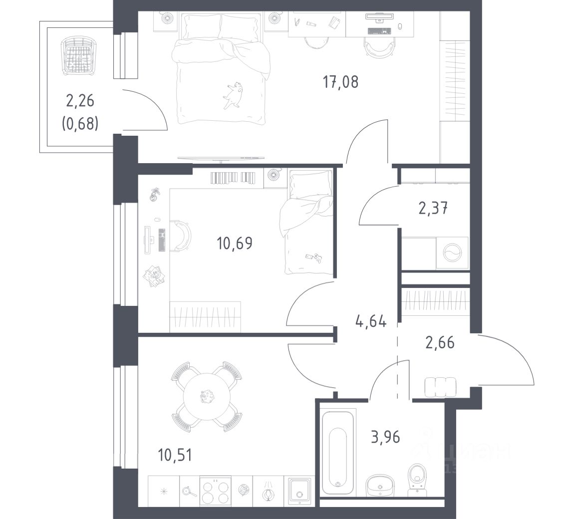 Строим кварталы для жизни с заботой о будущем. Предлагается 2-комнатная квартира комфорт-класса площадью 52,59 кв.м в корпусе 3.2 на 7-м этаже, в жилом комплексе ''Егорово Парк''.