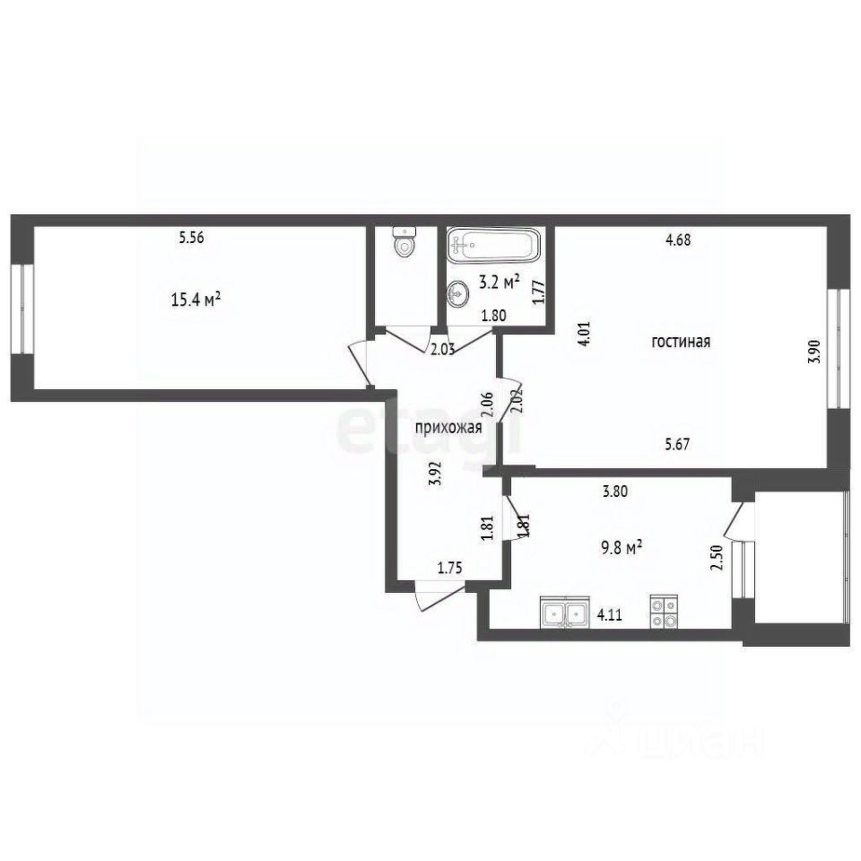 Две изолированные комнаты, что обеспечивает уединение и комфорт для всех членов семьи. Большая кухня и раздельный санузел. Есть лоджия для отдыха или хранения.