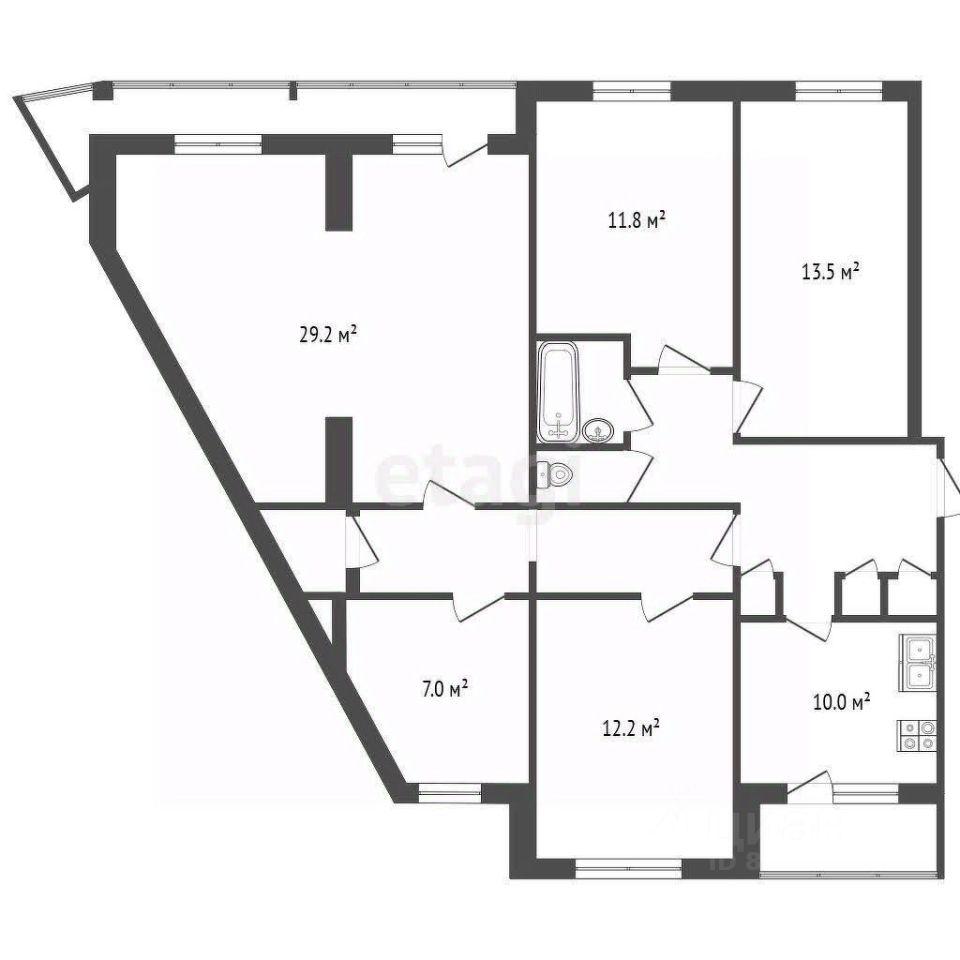 Освещение продумано до мелочей — от люстр до точечных светильников. Встроенная кухня с духовым шкафом, варочной панелью и вытяжкой. Уютная гостиная с роскошной люстрой и мягкой мебелью — пространство для отдыха всей семьи: 29.2 м² 4 изолированные комнаты площадью 13,5 м2, 12,2 м2, 11,8 м2, 7 м2. Кухня с мебелью, встроенной техникой, обеденной зоной и выходом к светлому эркеру.