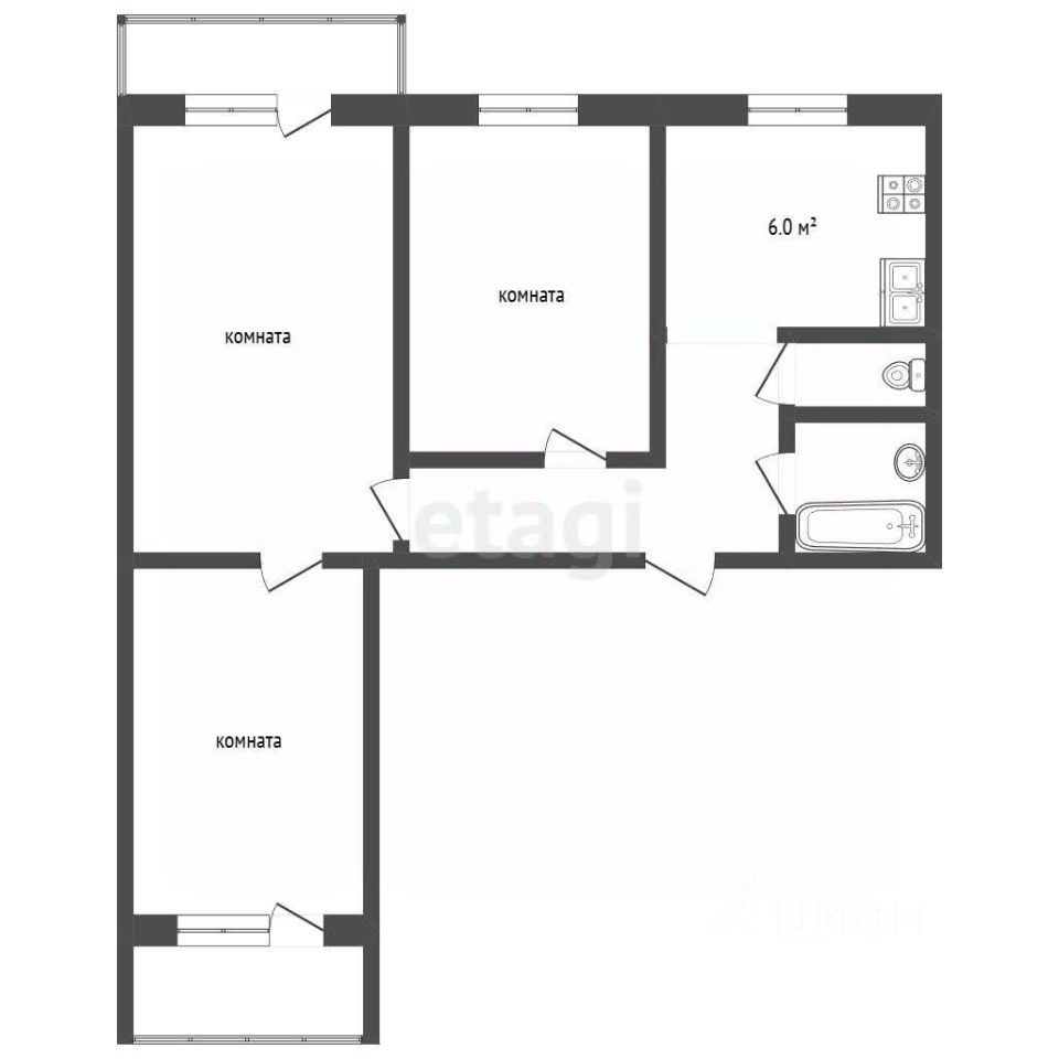 - Квартира расположена на 5-м этаже - общая площадь 66 кв.м. - 3 изолированные комнаты - Квартира-распашонка - раздельный санузел - большой балкон - есть кладовка